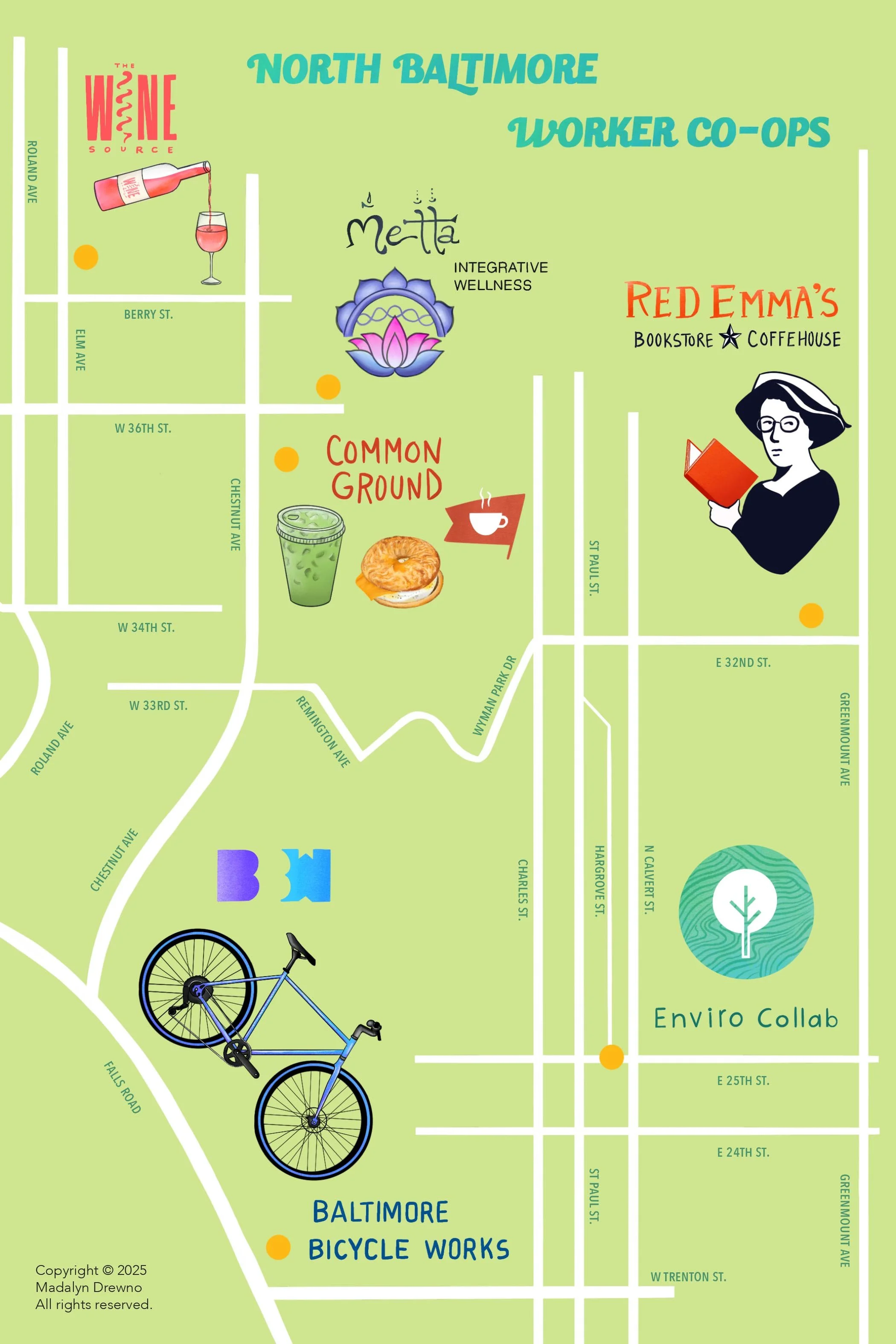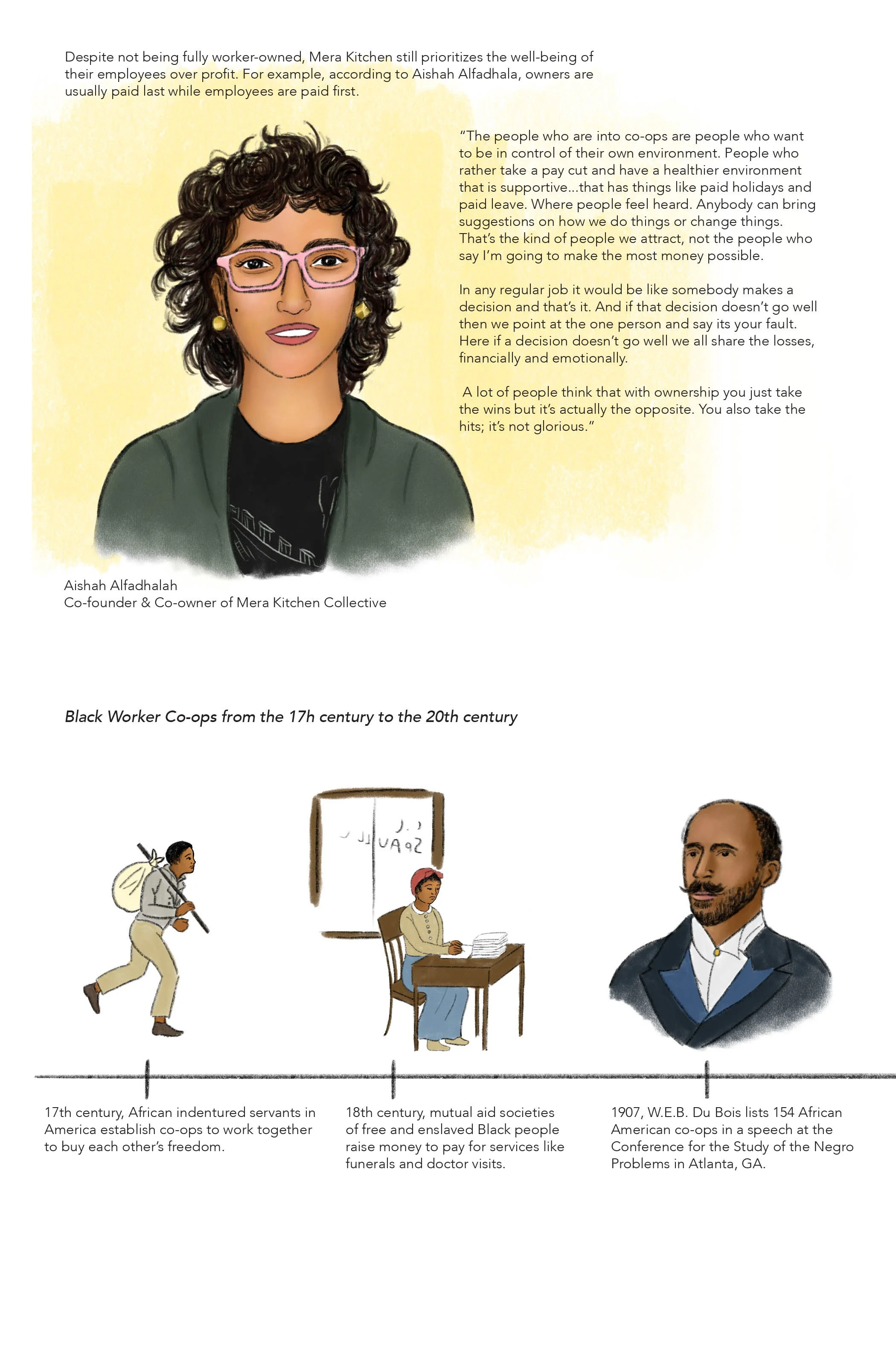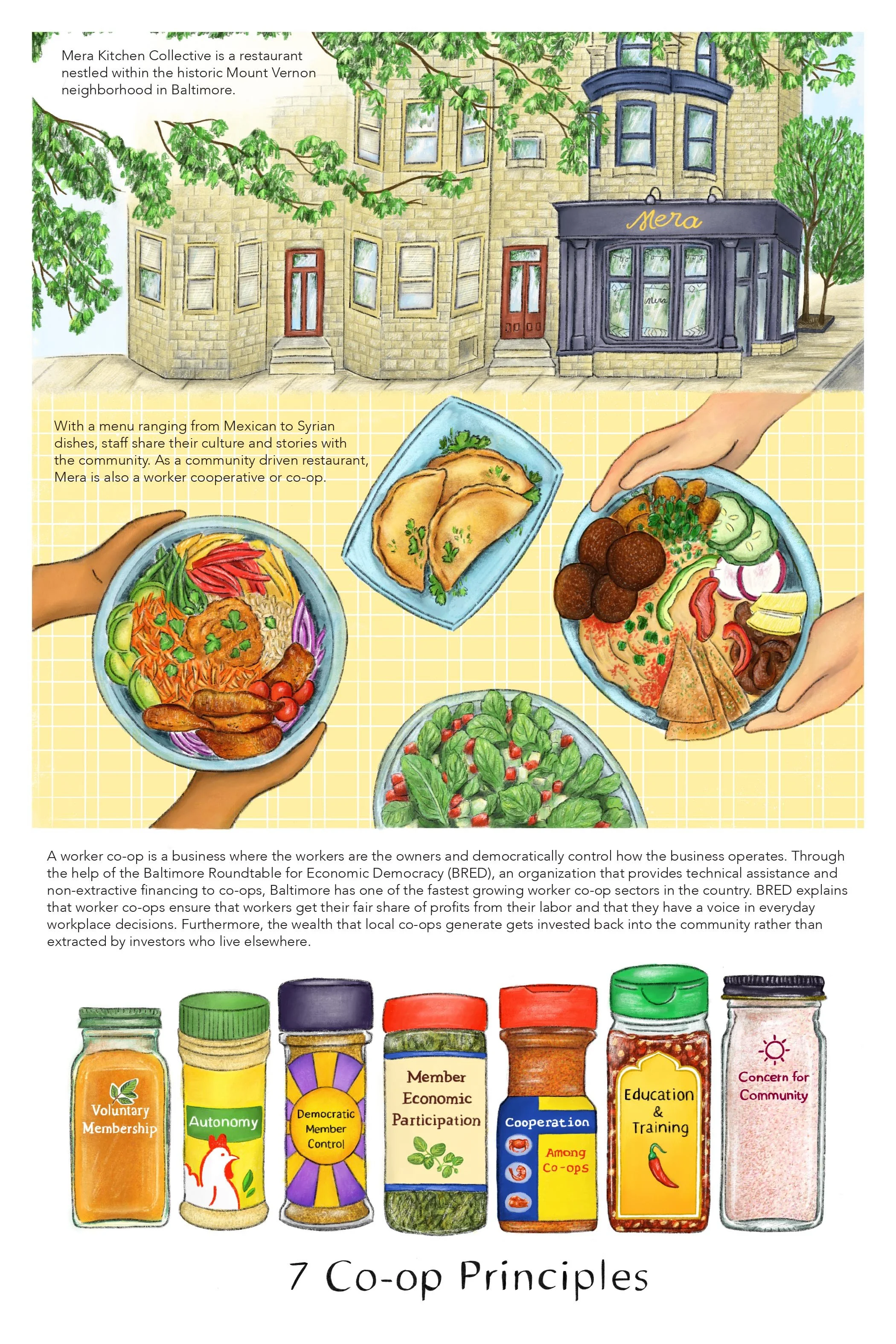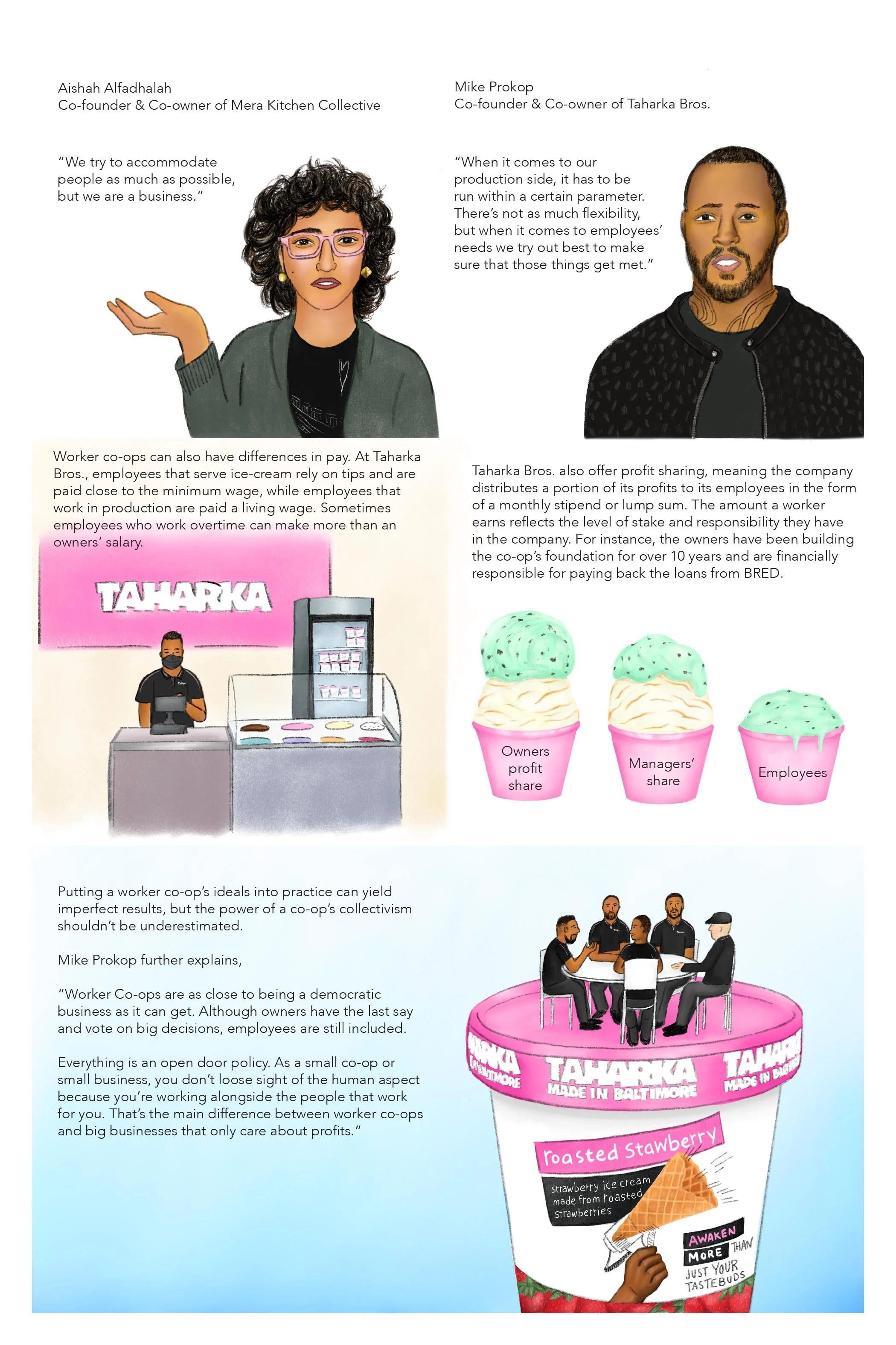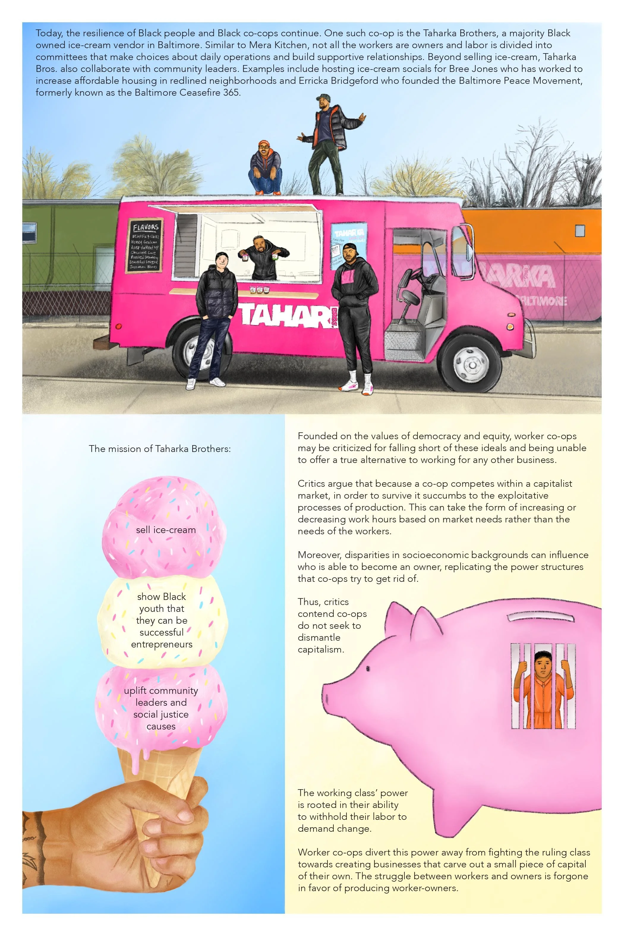 An illustrated zine that explores the history and value of worker co-ops by taking a specific look at Baltimore co-ops.